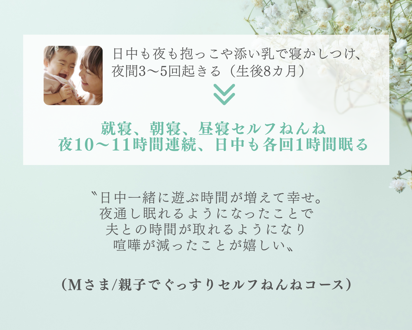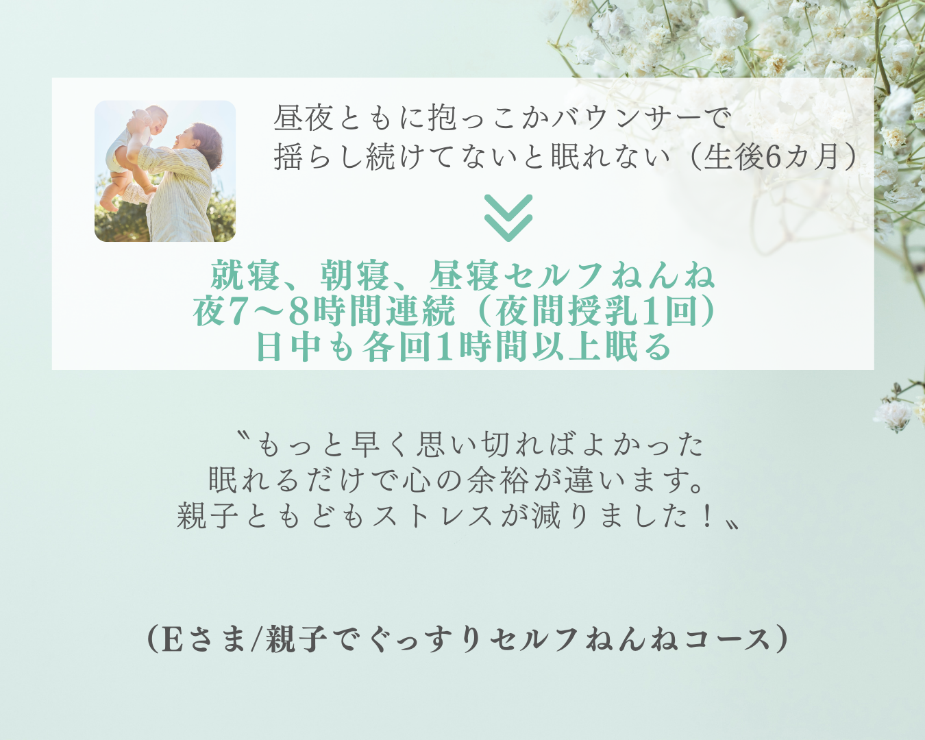 泣きと親子のストレスを最小限にして眠る力を引き出すため、「睡眠の土台」から整えます。